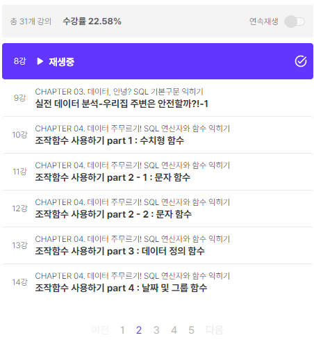 | [5일차] SQL 기본구문 익히기 (0) | 2023.01.05 |