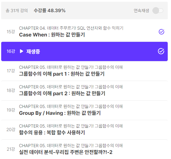 | [15일차] Case When. 원하는 값 만들기 (0) | 2023.01.15 |