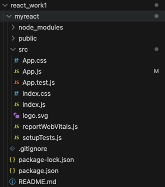 리액트 애플리케이션으로 잘 완성된다면 아래와 같은 폴더 구조가 생성된다.