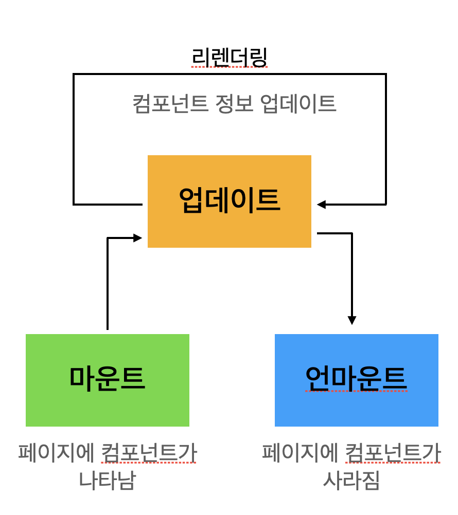 이는 페이지에 렌더링 되기 전인 준비 과정에서 시작해 페이지에서 사라질 때 끝이 나는 형태로 되어 있다.