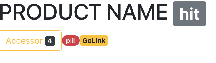 <h1> PRODUCT NAME <Badge color='secondary'>hit</Badge></h1> // (1)