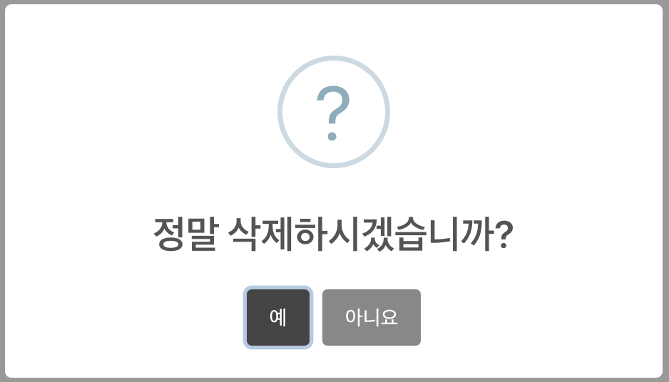 웹을 사용하다보면 사용자에게 확인이 필요한 경우 많이 사용하는 알림의 경우 alert를 많이 사용하는데,
