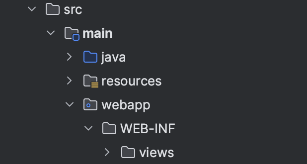 WEB-INF/views하위의 .jsp를 모두 view로 설정했기 때문에 jsp 파일들은 views의 폴더에 넣어서 사용하면 된다.