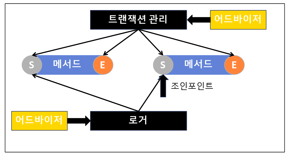 : 횡단 관심은 조인포인트 전/후에 AOP에 의해 자동 추가됨